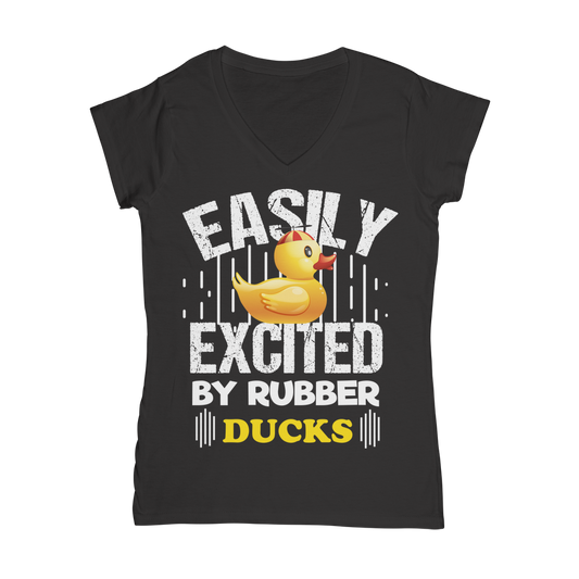 Easily Excited by Rubber Ducks Classic Women's V-Neck T-Shirt