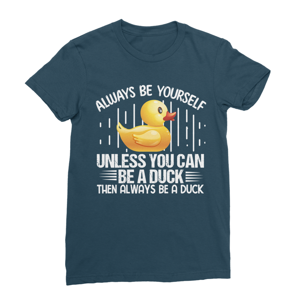 Let your quack shine in this "Always Be Yourself - Classic Women's V-Neck T-Shirt". Featuring the unforgettable phrase, "Always be yourself, unless you can be a duck!" this classic v-neck is perfect for the free-spirit who loves to cruise non-stop in search of ducks (and themselves!).
