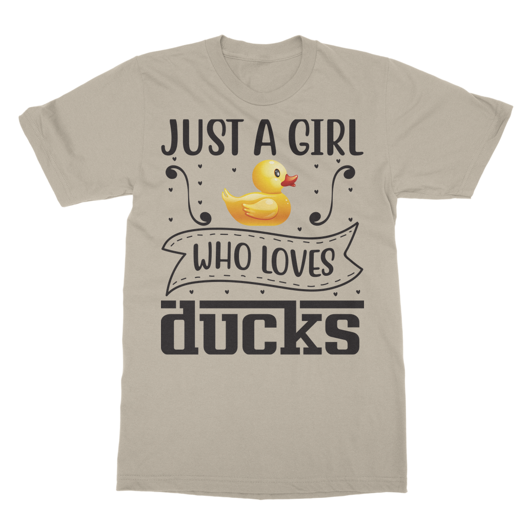 Let your quackers fly with this comfy classic adult t-shirt for all you duck-lovin' chicks out there! It's just a girl who loves ducks and that's all right! (No fowl language, of course!)