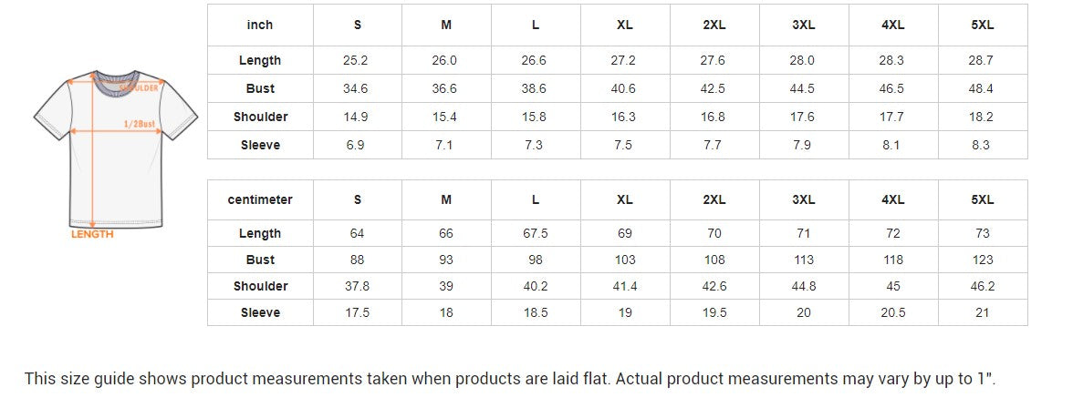 | centimeter | S | M | L | XL | 2XL | 3XL | 4XL | 5XL |