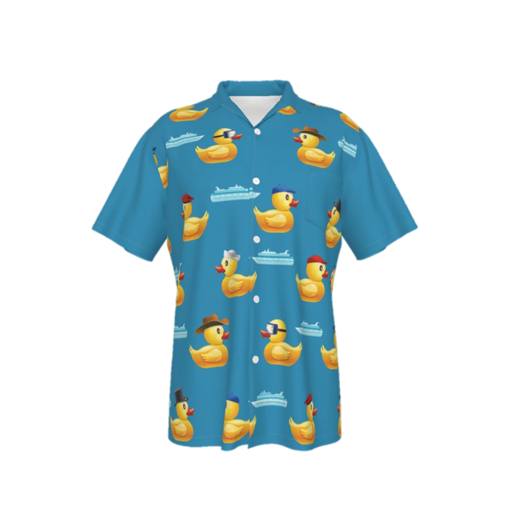 This classic Hawaiian shirt is made from lightweight, breathable fabric and features a bold duck print. Perfect for a day on the beach or a tropical cruise, the shirt also has a convenient pocket for keeping your necessities close. Enjoy the comfortable fit and sunny style of this classic Hawaiian shirt.