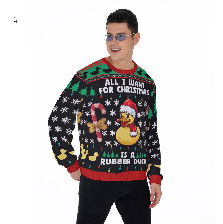 This festive Christmas sweater leaves no doubt that you're a quacker for rubber ducks! If you're a sneaky duck-hider on cruise ships or a ducker of Jeeps, you'll showcase your holiday cheer in style.
