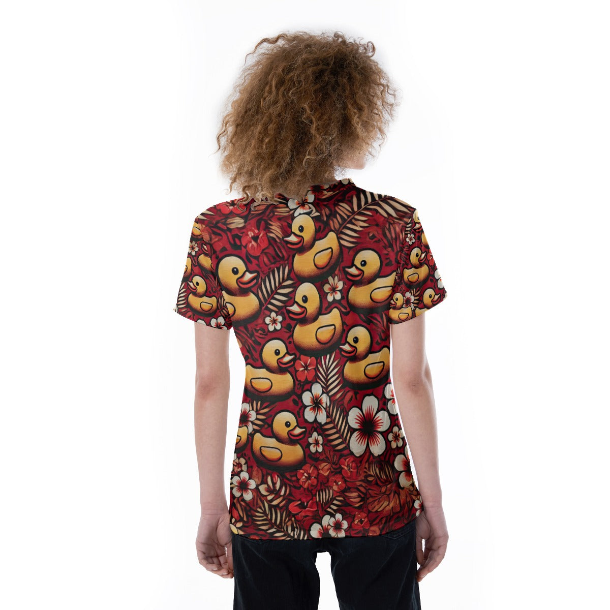Turn up the heat with the Volcano Vibes V-Neck Tee. This bold yet subtle design features rubber ducks, tropical flowers, and ferns in shades of red and orange, perfect for those who want a hint of fiery charm on their next adventure. The loose fit and eyelet detail add a stylish touch to this soft, breathable top. This top runs small, so be sure to order based on measurements.