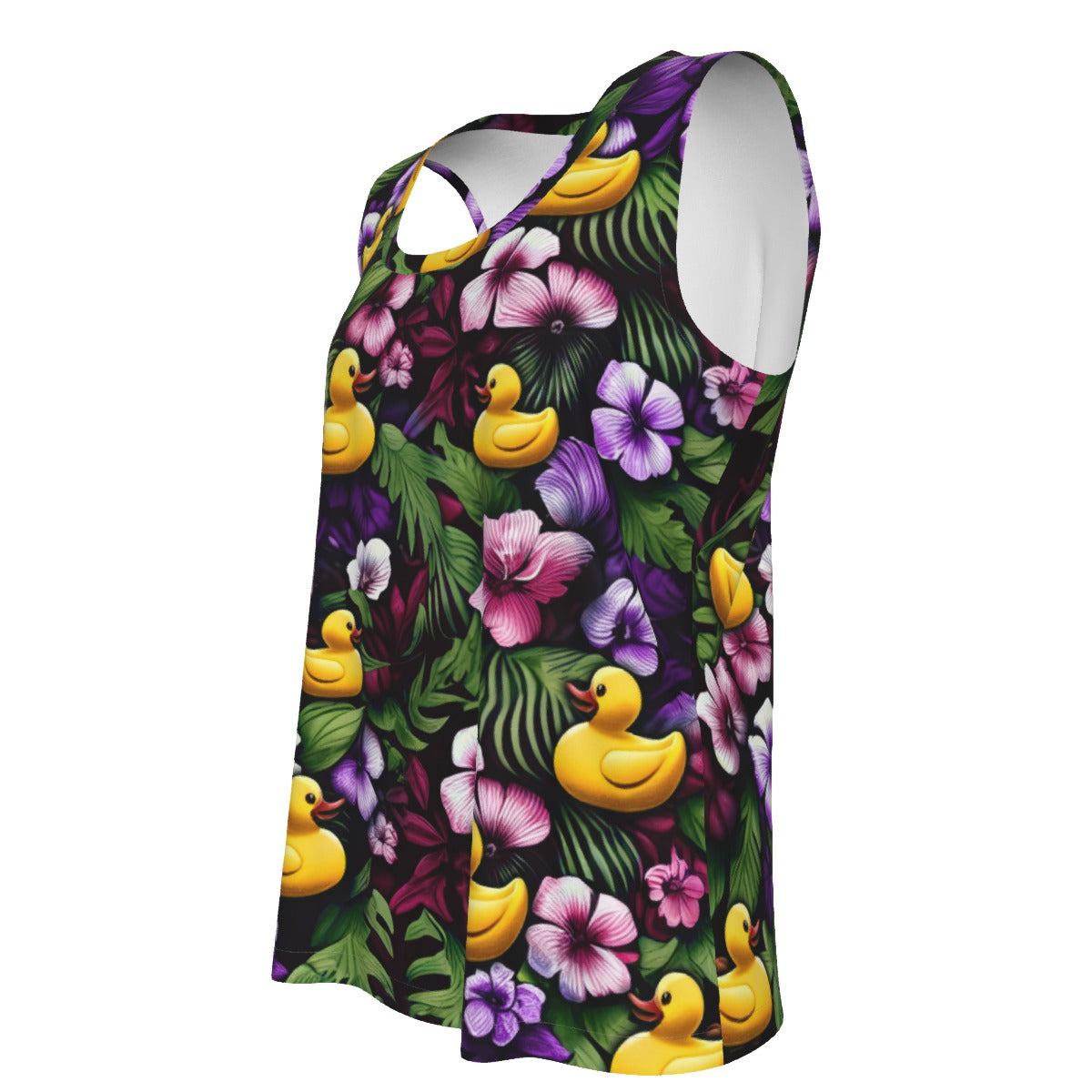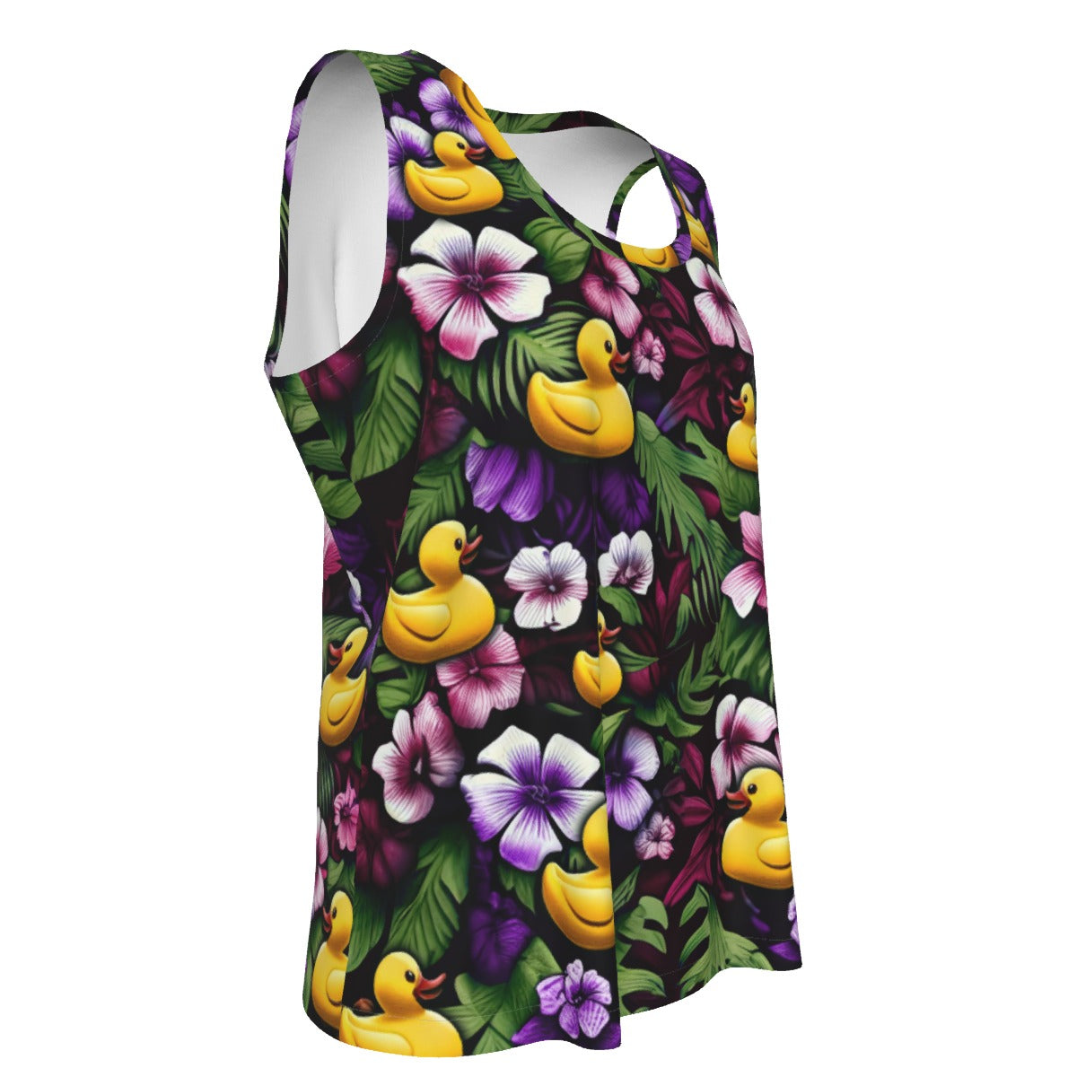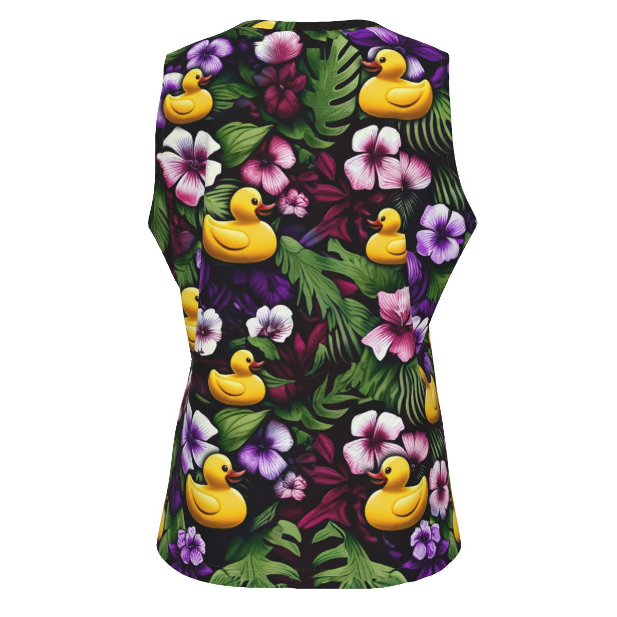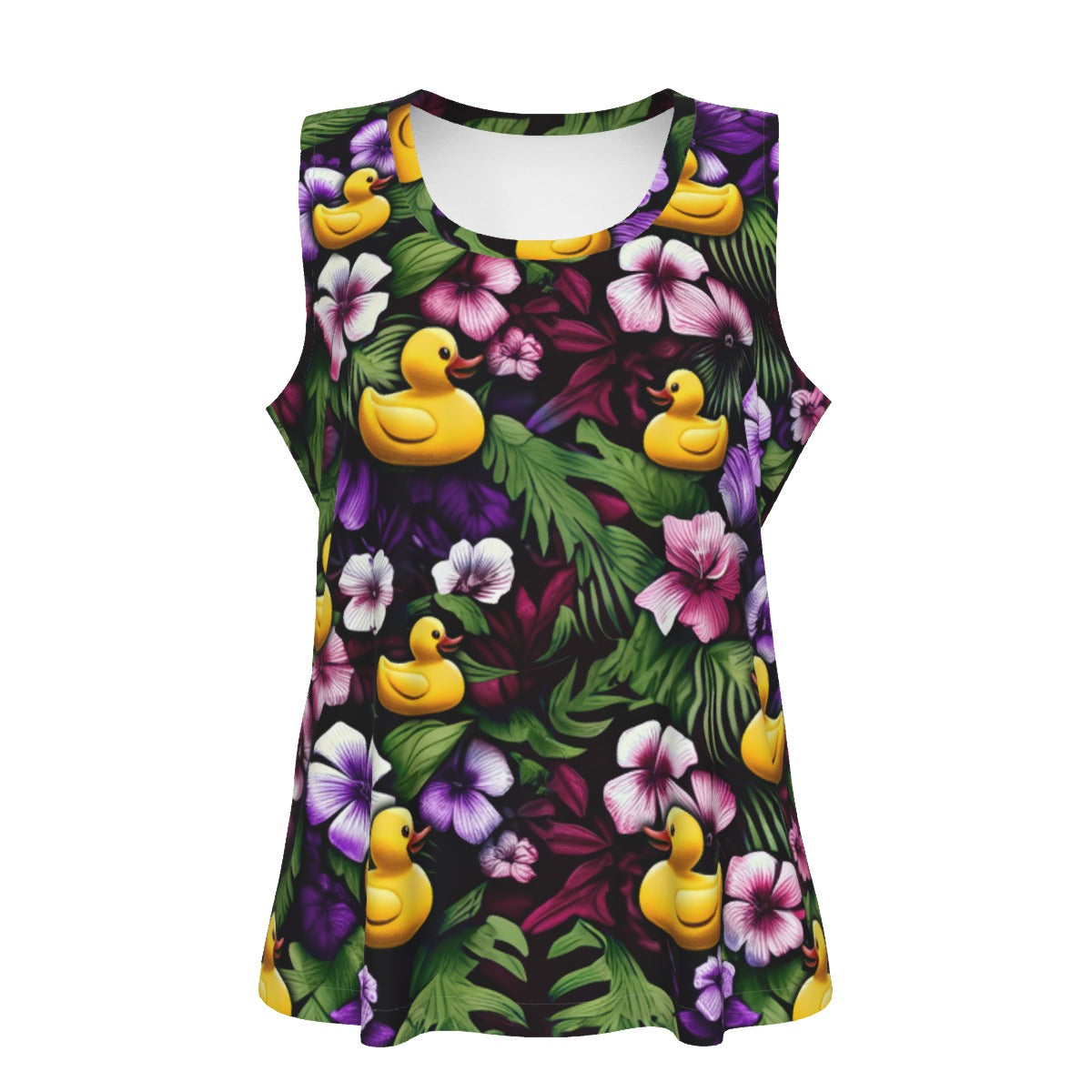 Soak up the sun and join in the playful pastime with our "Ducky Royal Purple Hawaiian Tank," the quintessential piece for the avid duck hider on any cruise journey. This sleeveless top captures the essence of violet florals with its radiant backdrop, featuring  rubber ducks hiding amongst the foliage, making this tank a colorful tribute to the hidden duck game. It's the perfect blend of comfort, charm, and cheer for your seafaring adventures or casual on-deck relaxation.