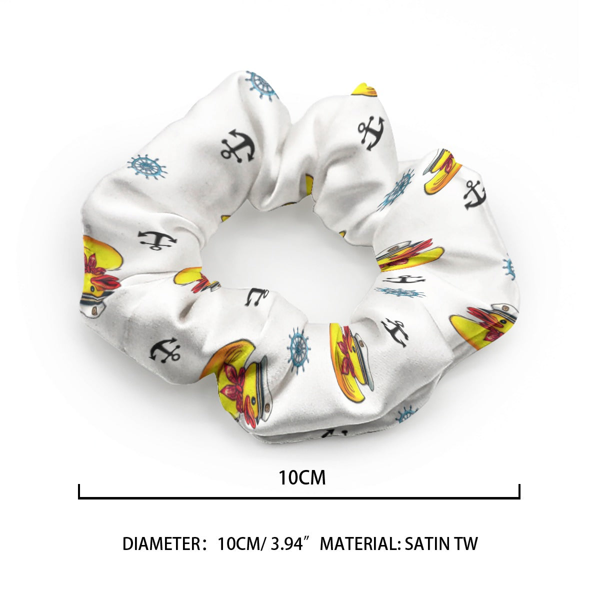 Ahoy, duck lover! The Ducks Ahoy Scrunchie is here to keep your locks in check while you're out on the water or just dreaming of your next cruise. This scrunchie pairs perfectly with our Ducks Ahoy shirt, giving you a coordinated look that's sure to make waves. Made from silky satin twill, it's gentle on your hair and easy to use, so you can focus on your duck-ventures without worrying about hair damage.