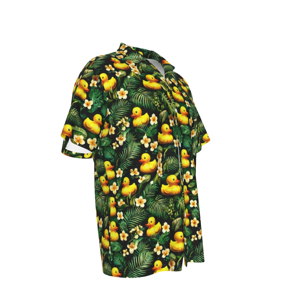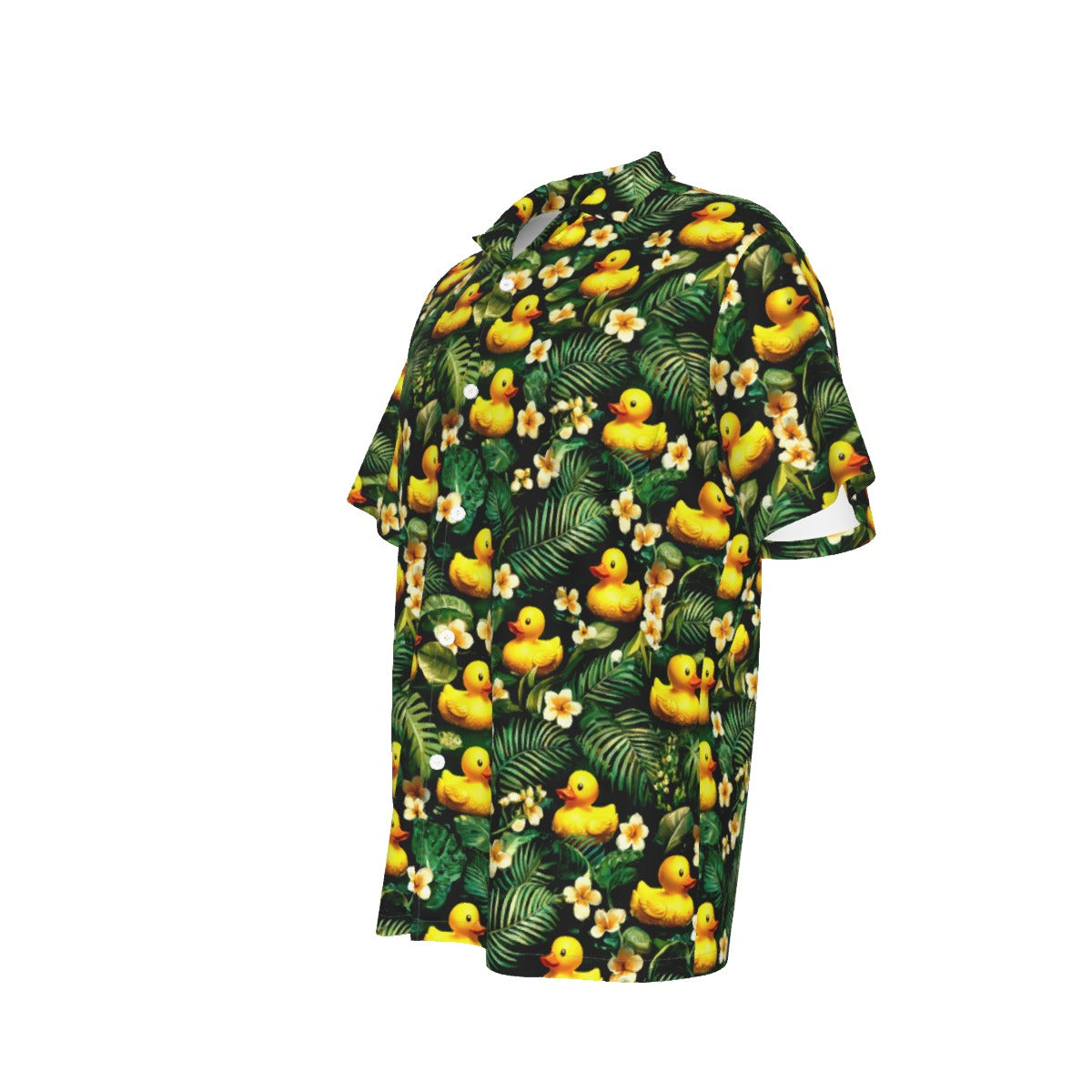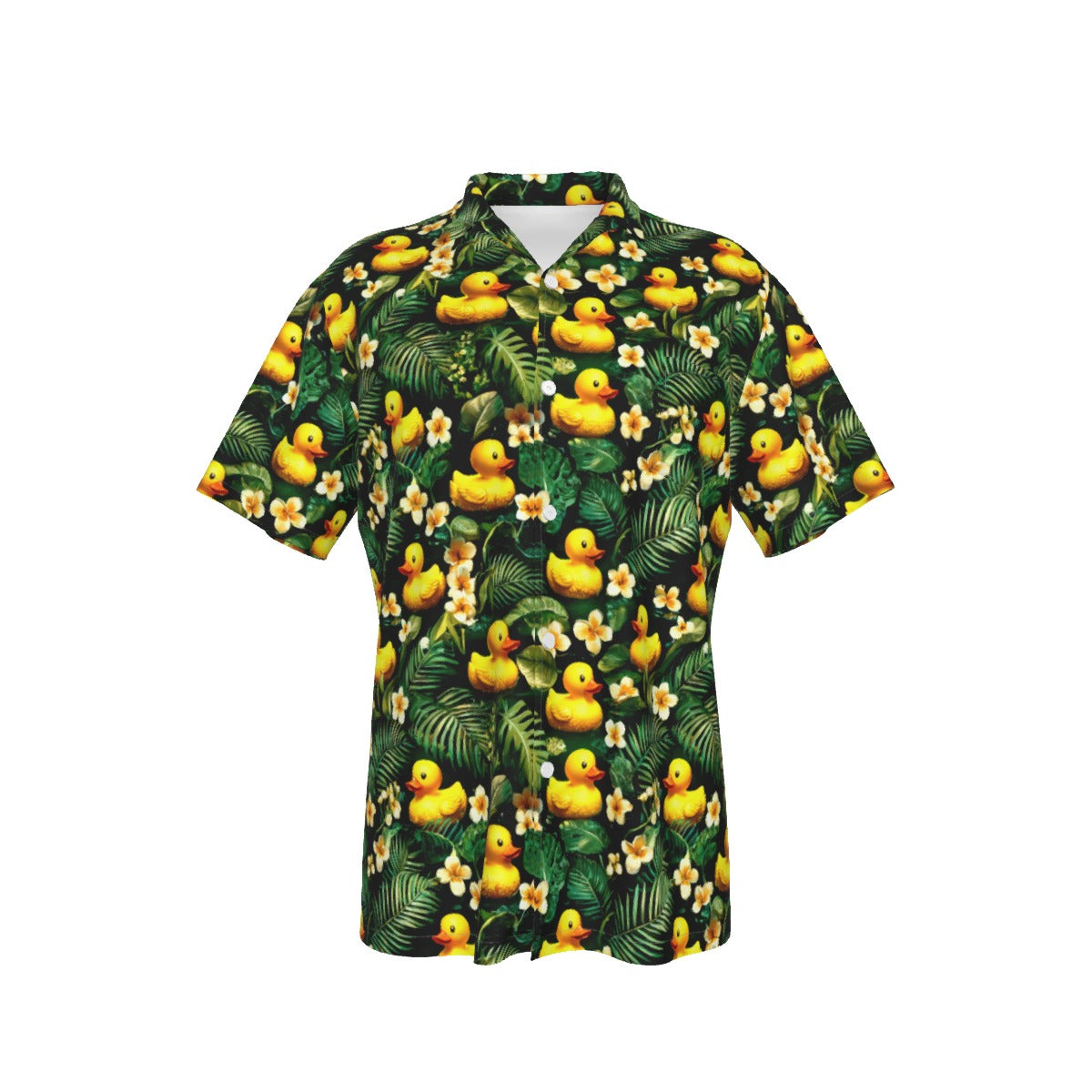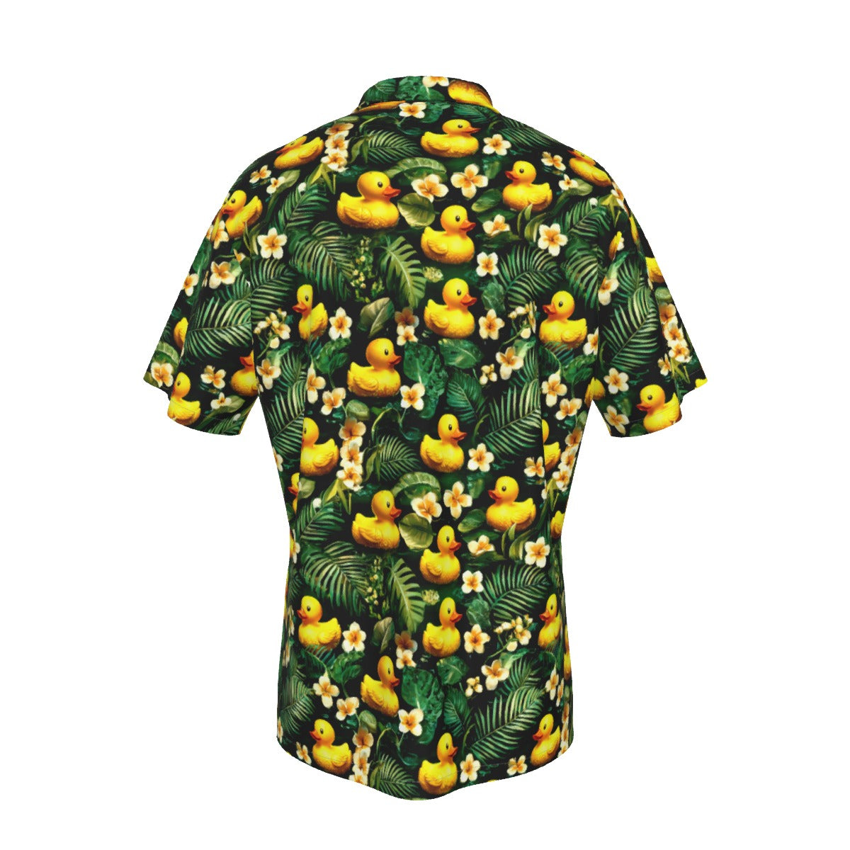 Tropical Forest Rubber Duck Men's Hawaiian Shirt With Pocket