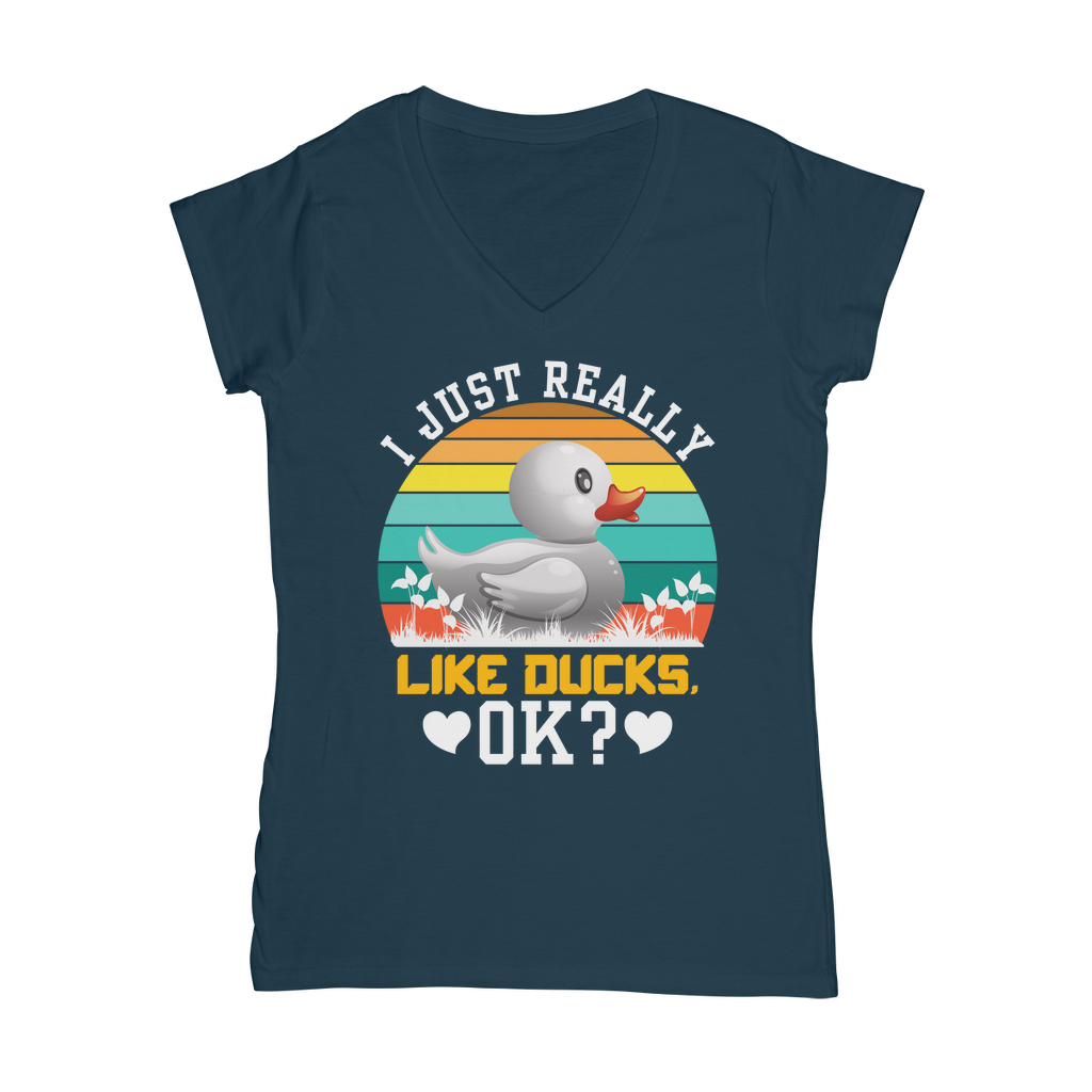 I Just Really Like Ducks! Ok! Classic Women's V-Neck T-Shirt