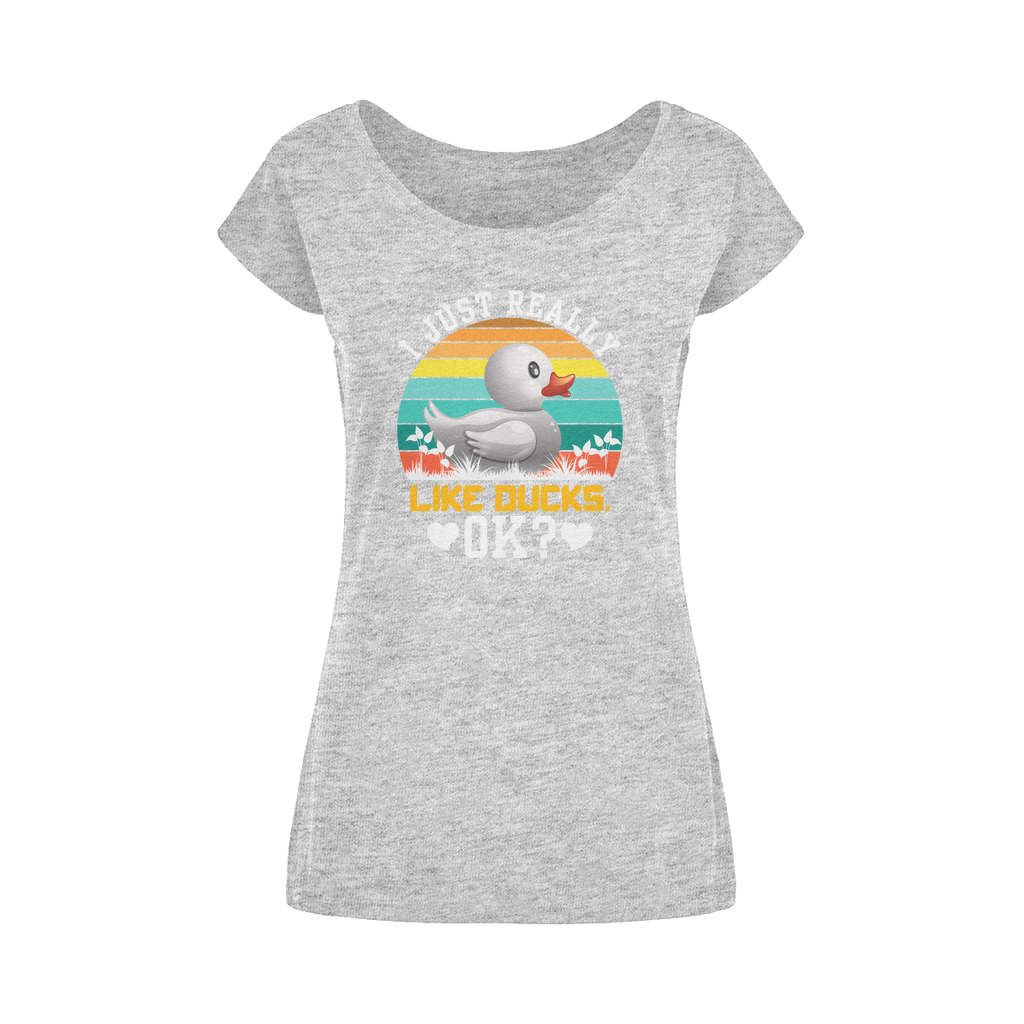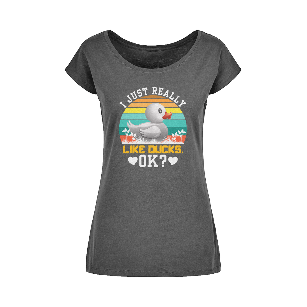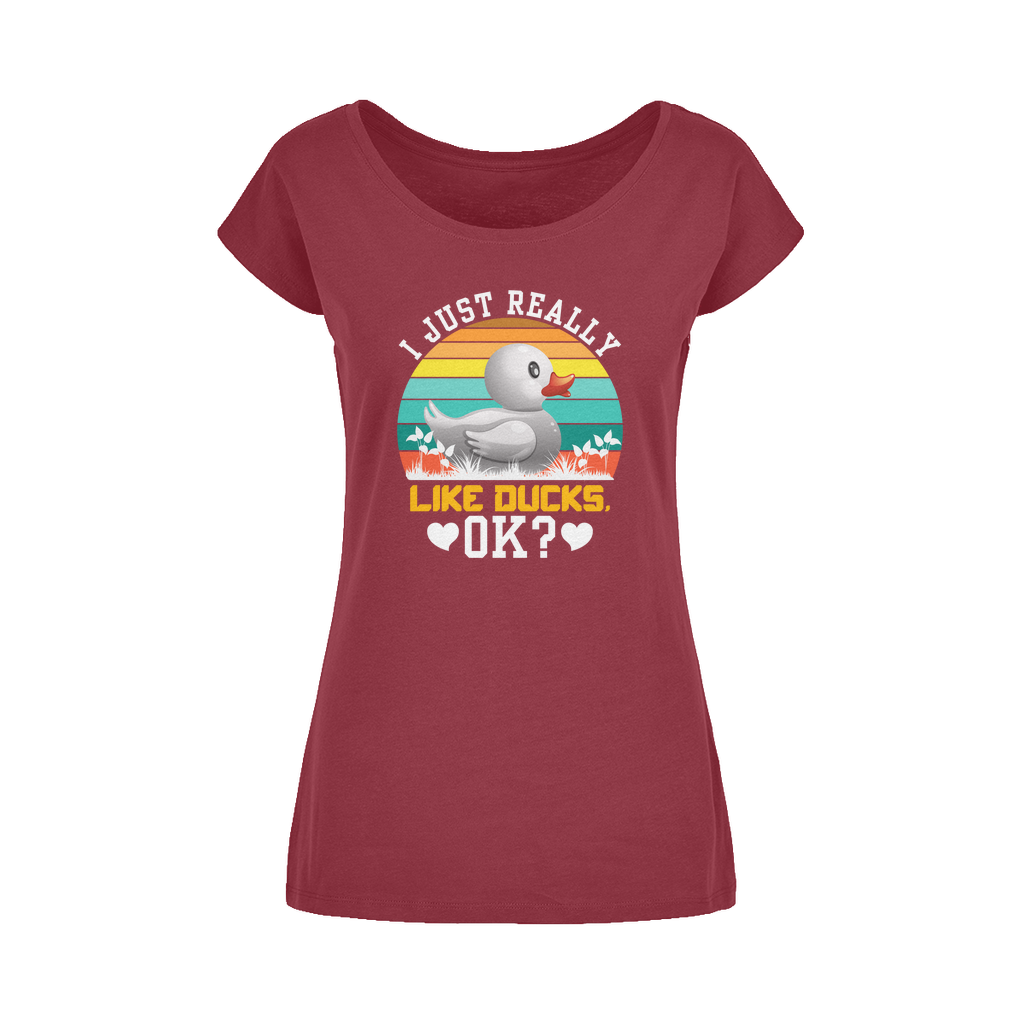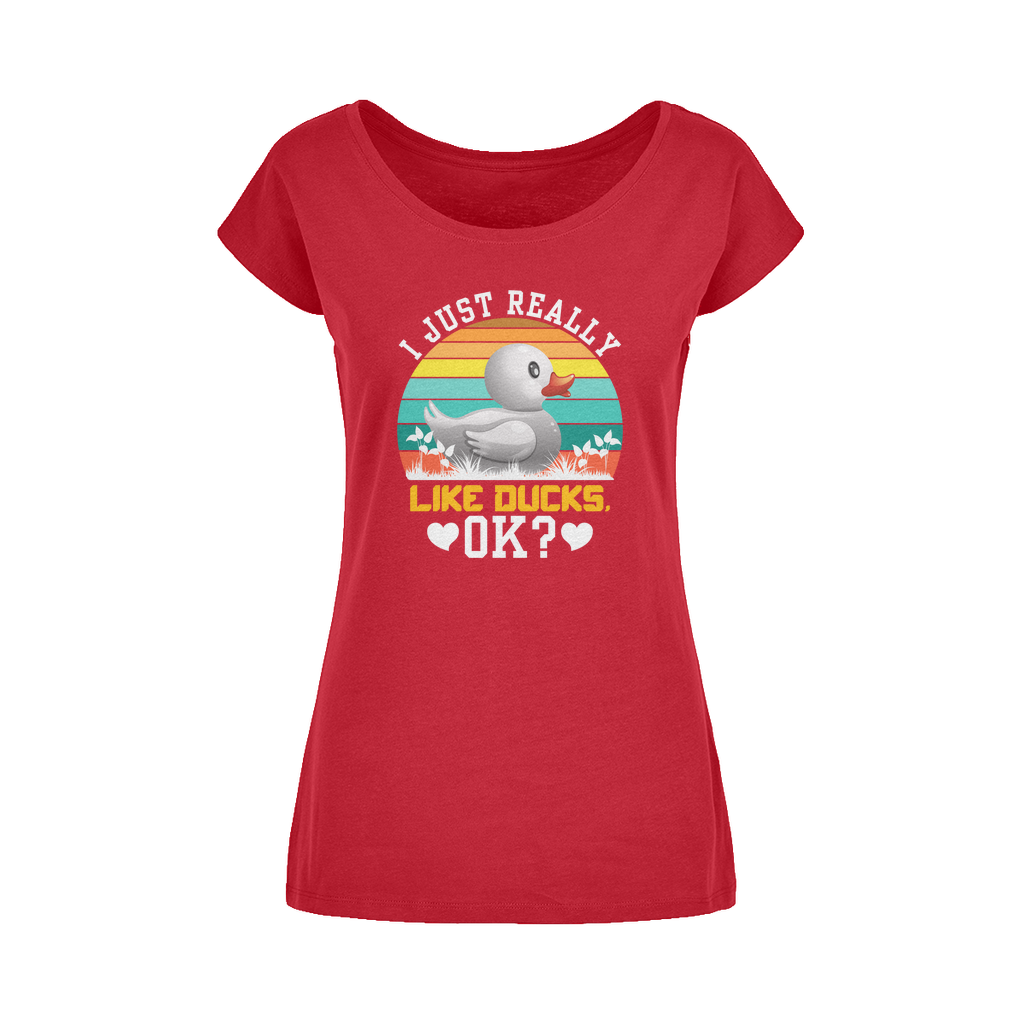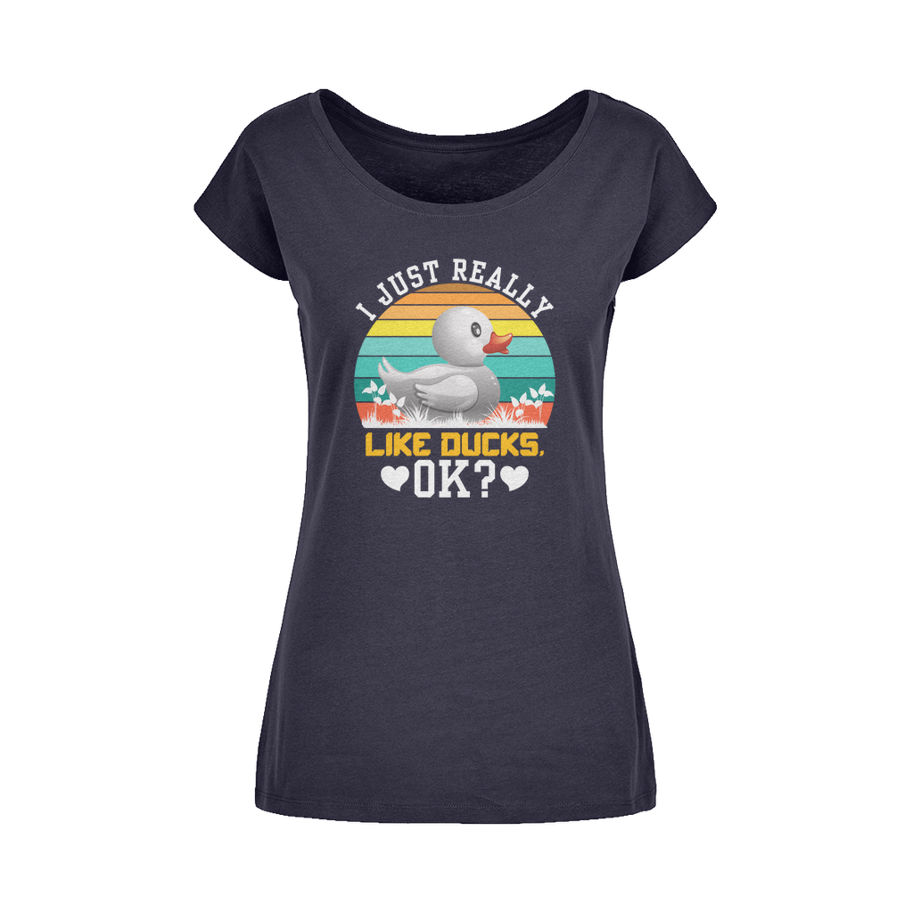 Make a statement in this ladies t-shirt with an important message: I just really like ducks - OK?? Let your love for all things duck-related shine with this comfy wide neck t-shirt in sizes XS-5XL!! Quack it up!