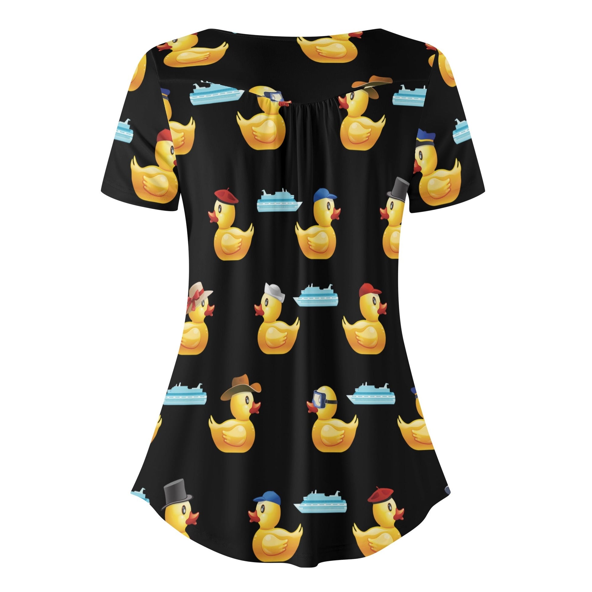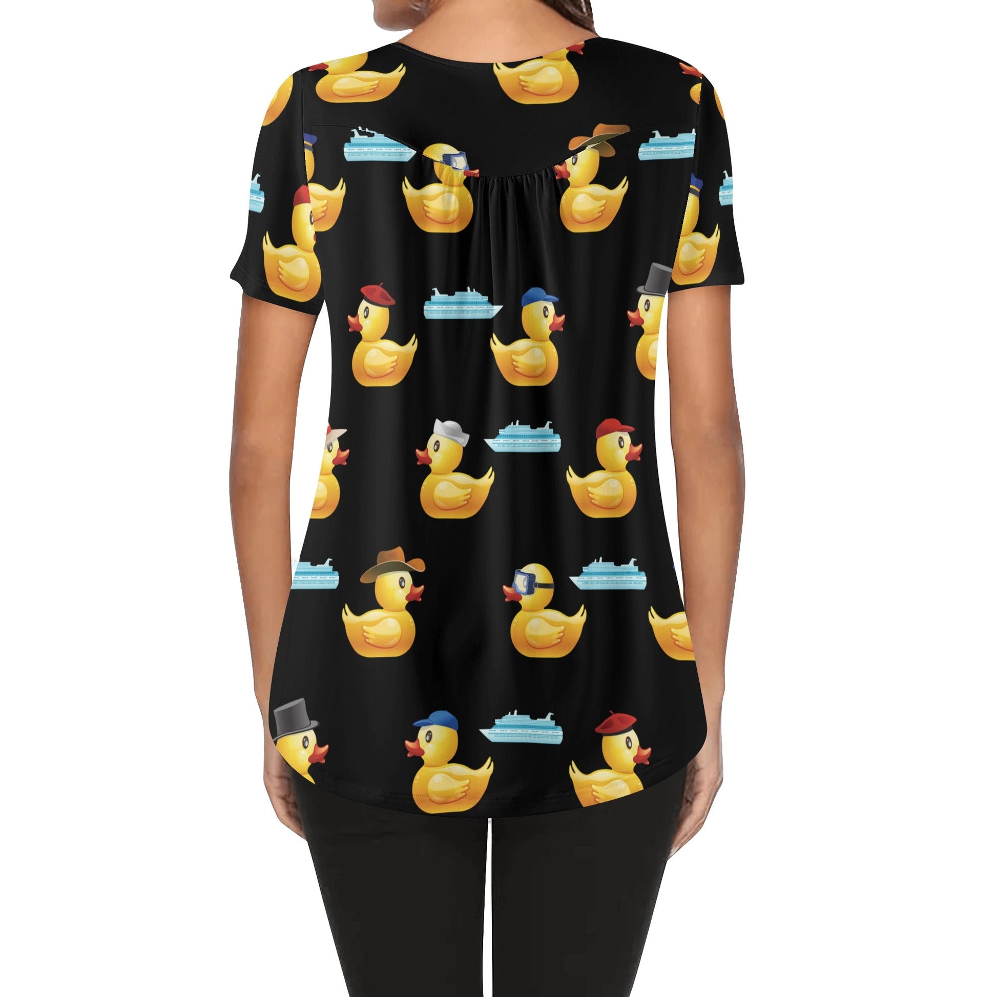 This Just Ducky V-neck blouse is sassy, stylish and one of a kind! Perfect for that day-to-night chic look, this black beauty will be sure to get heads turning! The soft, lightweight fabric is super comfy and the short sleeves are perfect for warmer days. Quack yes to this one-of-a-kind blouse!