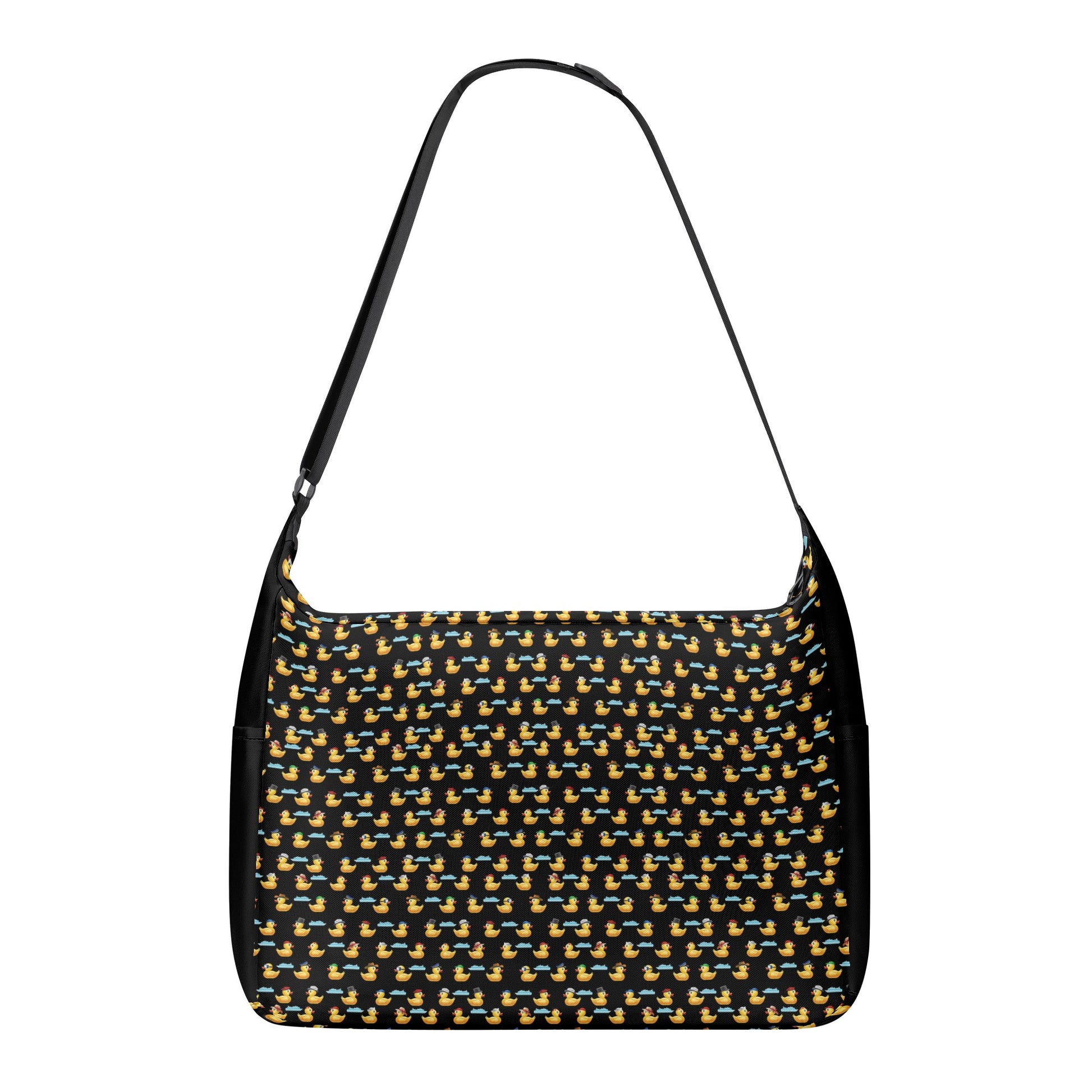 "Get ready to quack up on your next cruise with the Micro Duck Messenger Bag! Featuring an array of adorable tiny ducks in various outfits like a captain, sailor, cowboy, top hat, baseball cap, and snorkels, this bag is perfect for a secret duck mission (or just standing out in a crowd)."