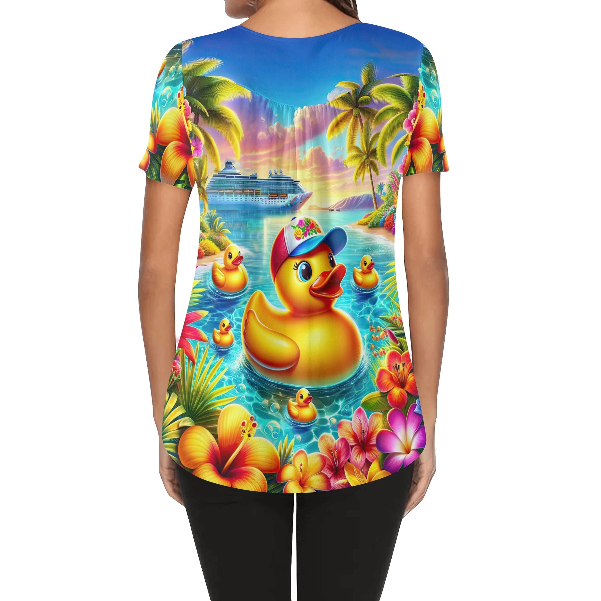 Sundown Splash Duck Scoop Neck Short Sleeved Blouse