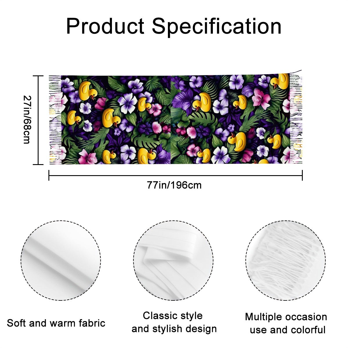 • Versatile Use: Sized at 77" x 27", it's perfect for draping, wrapping, or even tying around your cruise bag. Elegant enough for dinner, comfy enough for lounging.