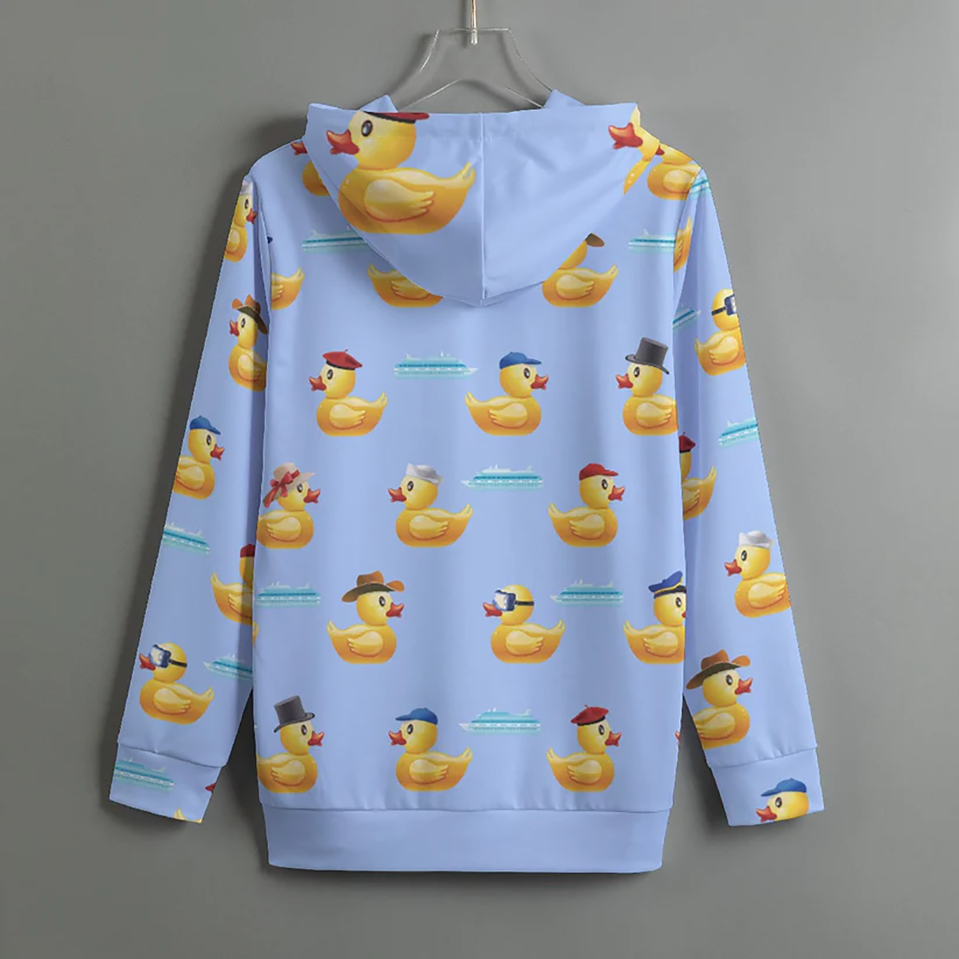 This Women's Ducky Pullover Hoodie With Drawstring provides stylish comfort with a cozy interior and drawstring hood. Featuring a charming design of ducks, it'll make a great addition for chilly nights on the cruise.
