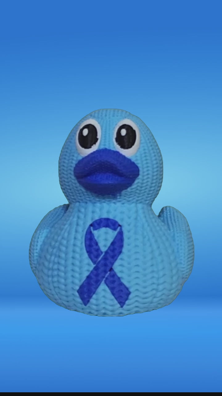 Quack for a Cure with our Diabetes Awareness Duck! This soft blue duck, featuring a charming crochet-like texture and a bold blue awareness ribbon on its chest, is a sweet symbol of strength and hope for all those affected by diabetes.