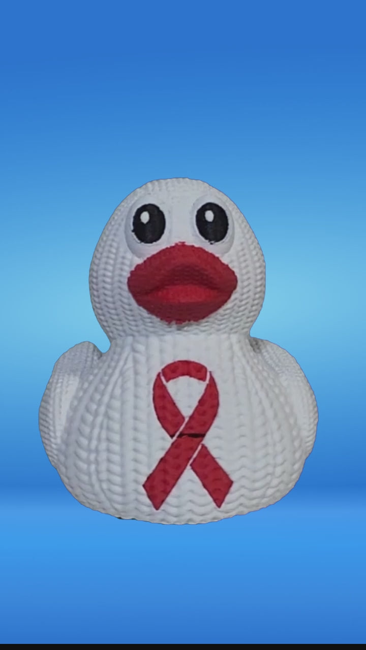Quack for a cause with our 2.5-inch Heart Disease Awareness Duck! With its bold red ribbon and crochet-like texture, this duck is more than just a cute keepsake—it's a heartfelt symbol of support for those affected by heart disease. Whether you hide it on a cruise ship, share it as a thoughtful gift, or add it to your collection, this duck serves as a meaningful reminder to take heart health seriously.