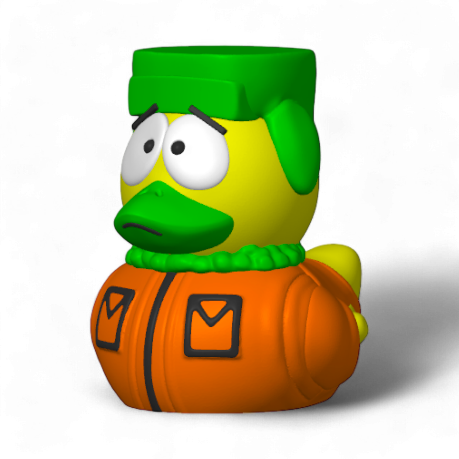 Add some intellect and a splash of green to your collection with the Kyle Duck! This 2.5-inch 3D printed masterpiece brings the sharp wit and loyal spirit of Kyle to life. With his iconic green hat, bright orange jacket, and thoughtful expression, Kyle Duck is perfect for fans of the voice of reason in the South Park crew.