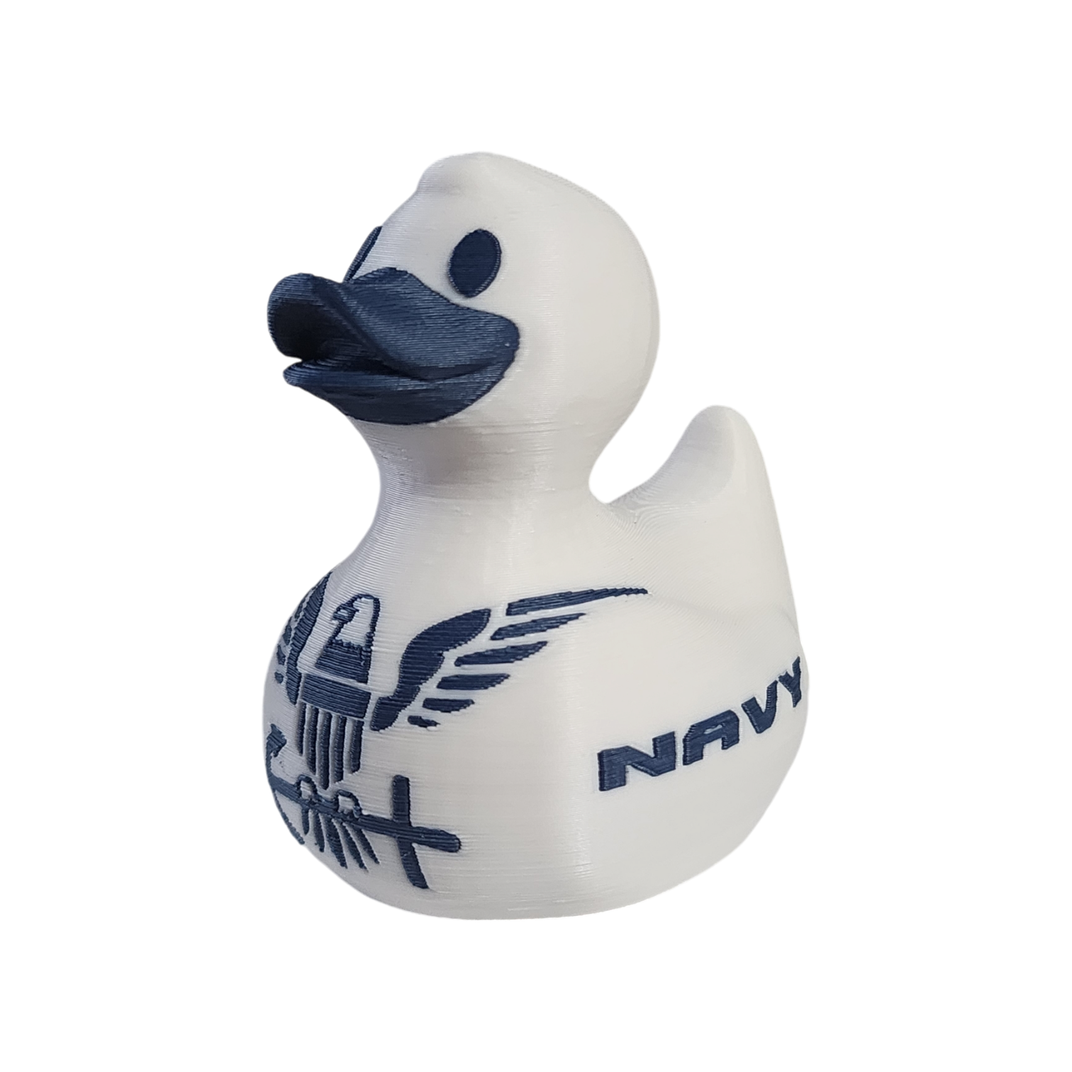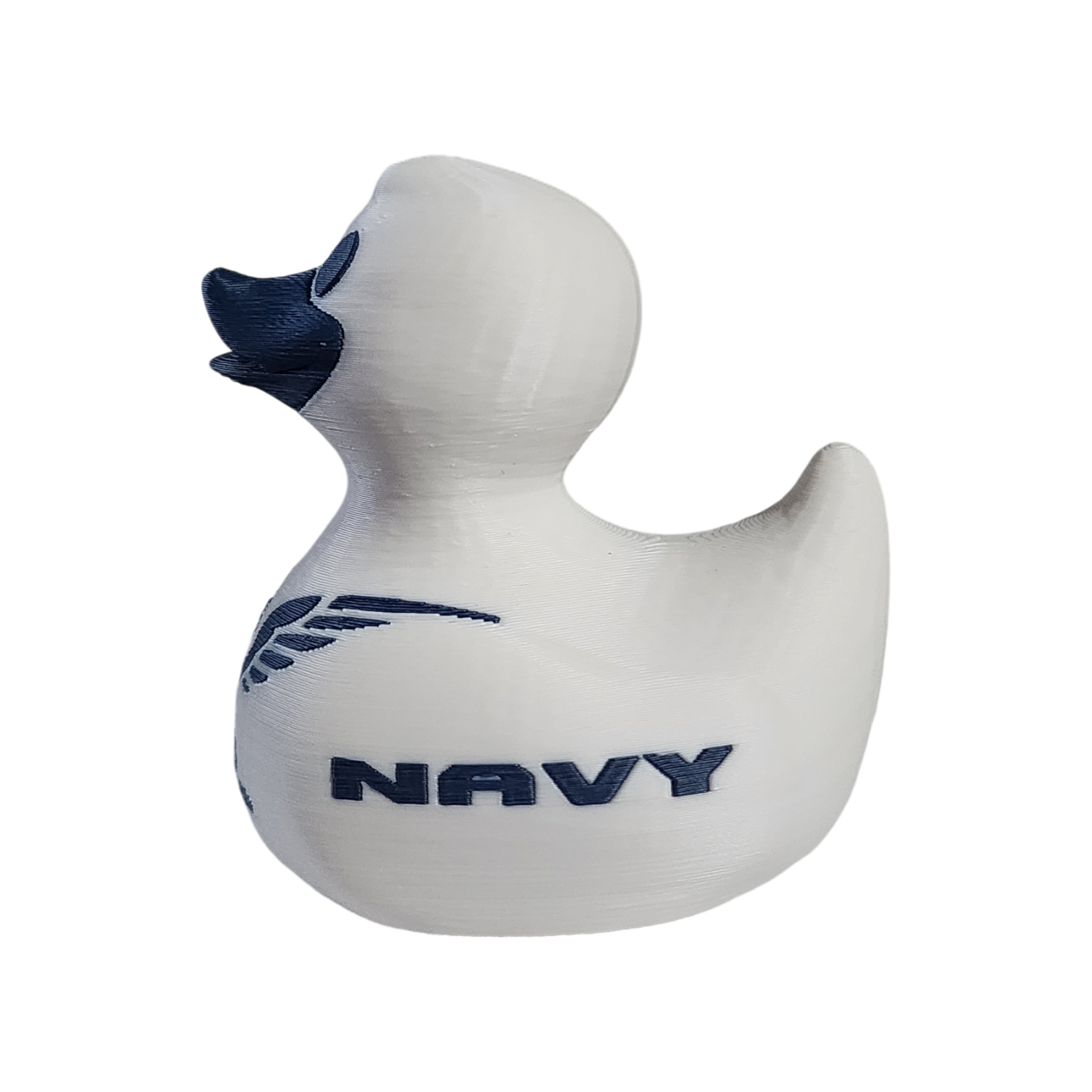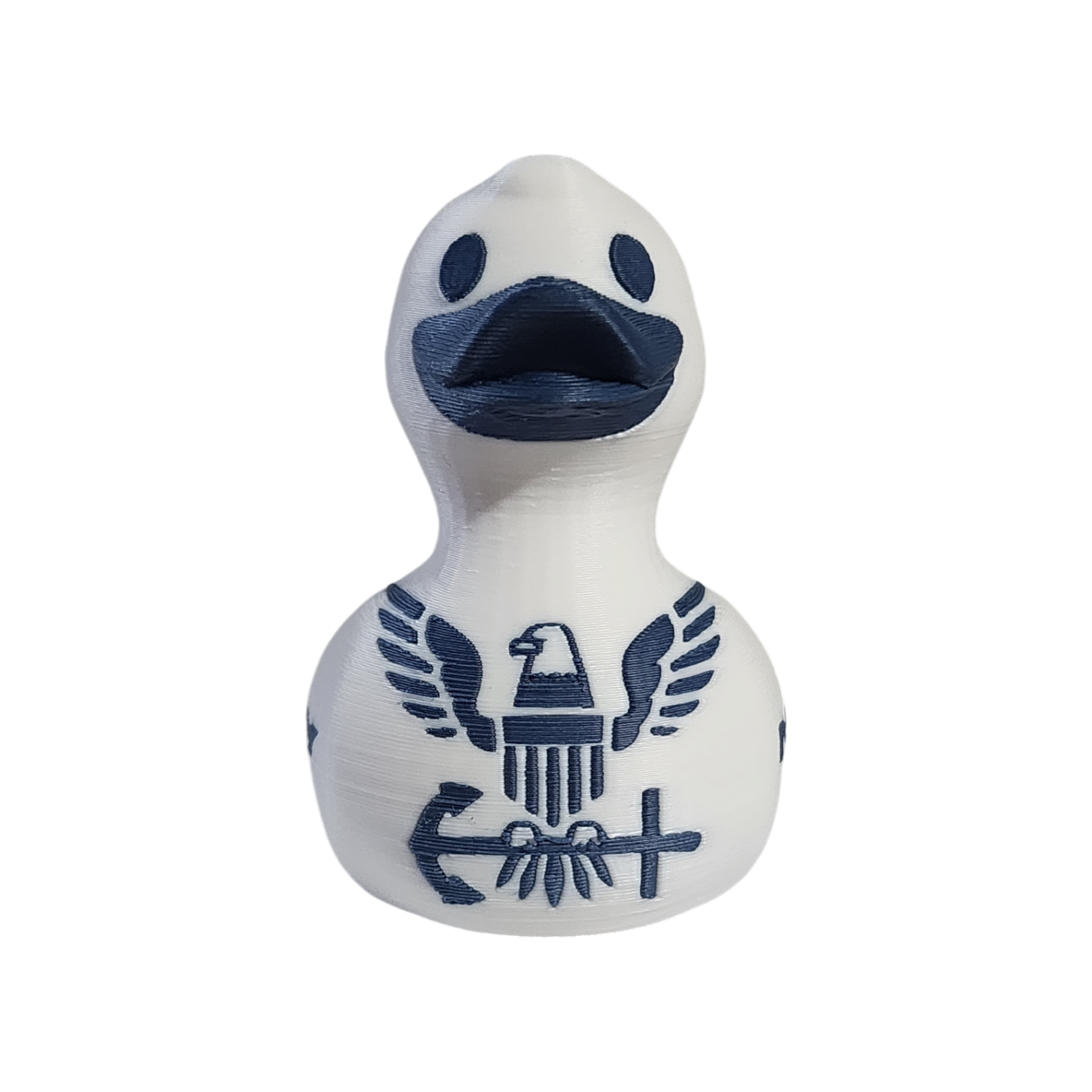 Prepare to be quacked up! Our Navy Duck sails the seas with pride in its crisp white and blue colors, adorned with the iconic Navy emblem. Perfect for your next cruise, this 2.5 inch duck is eager to be hidden in clever spots, traded with fellow seafarers, or presented as a token of appreciation to the ship's crew. Embrace the spirit of "Forged by the Sea" with this fearless and adventurous duck!