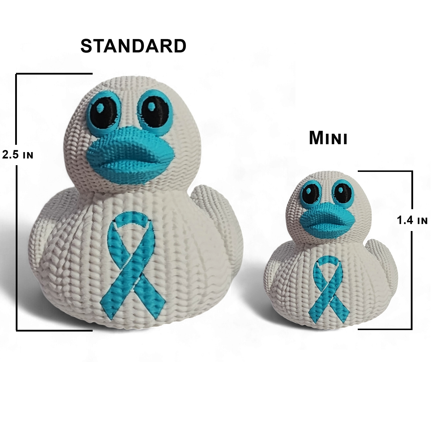 Our PCOS Awareness Duck is more than just a duck—it's a symbol of resilience, advocacy, and support for those affected by Polycystic Ovary Syndrome. Each duck is 3D printed with a detailed crochet texture and proudly displays the teal awareness ribbon, representing the fight for PCOS awareness, research, and support.