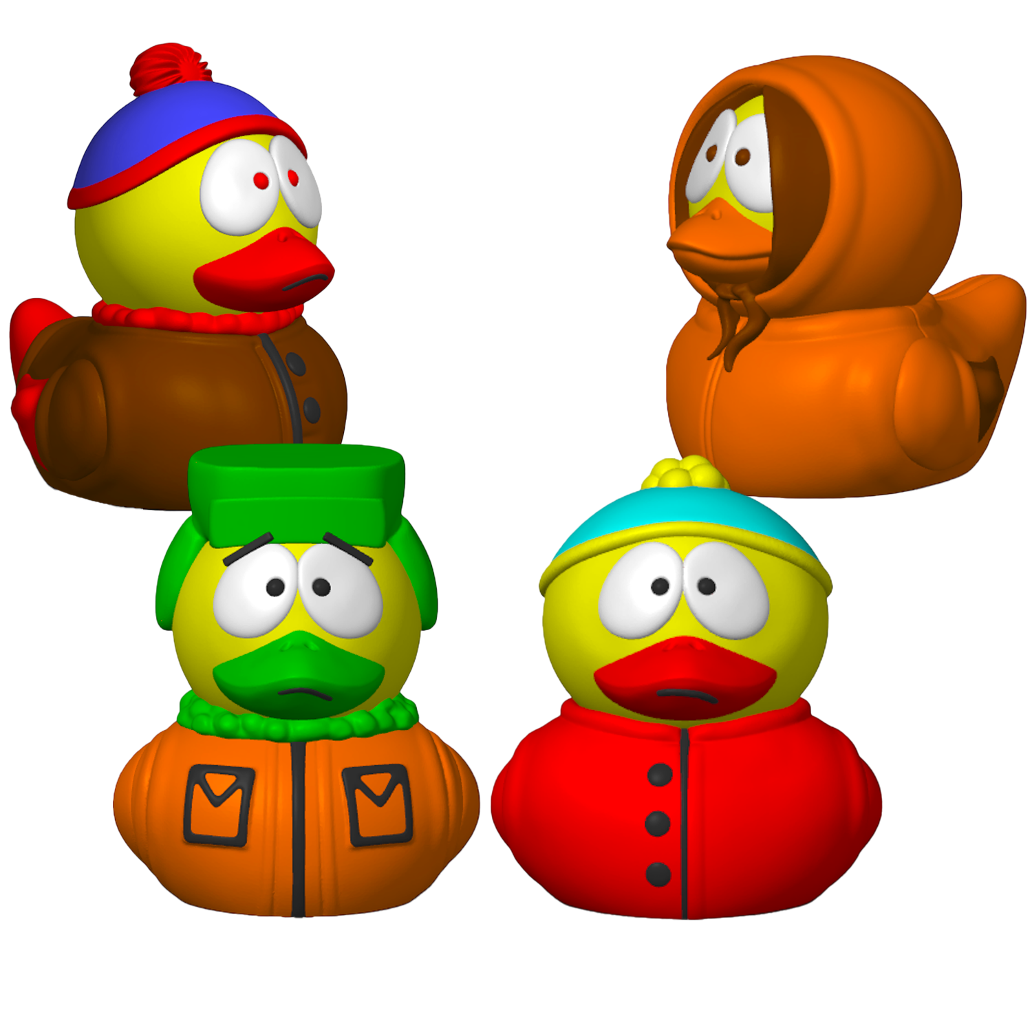Cartman: Decked out in his iconic red jacket and blue hat with a yellow pom-pom, this 3D printed Cartman duck captures his mischievous personality perfectly. Add a bit of sass to your collection!